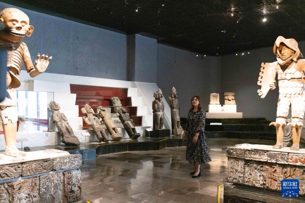 9月29日,在墨西哥首都墨西哥城大神廟博物館,館長帕特麗夏·萊德斯馬·布尚檢查陳列的展品。