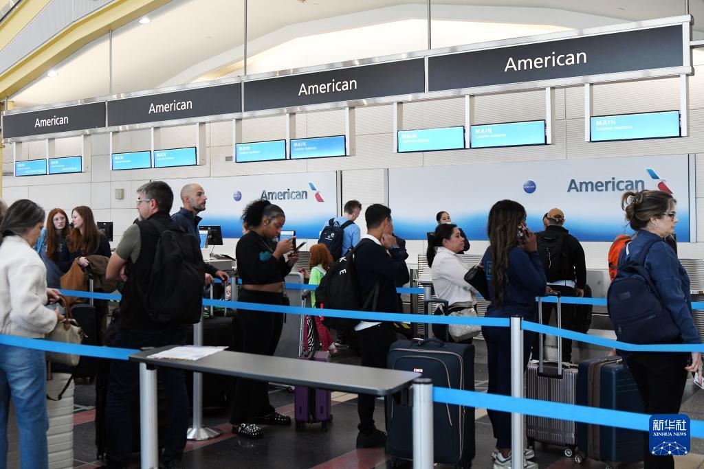 10月10日,在美國弗吉尼亞州阿靈頓的里根國家機場,人們辦理值機手續。