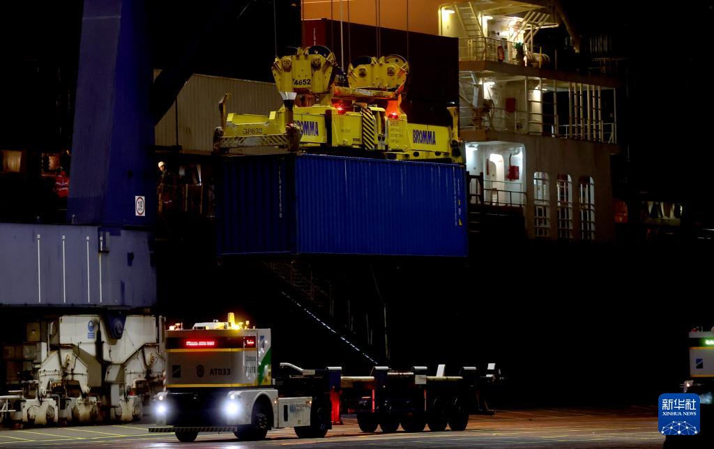 10月13日,中歐北極快航航線首艘貨船在英國費(fèi)利克斯托港停泊卸載集裝箱。