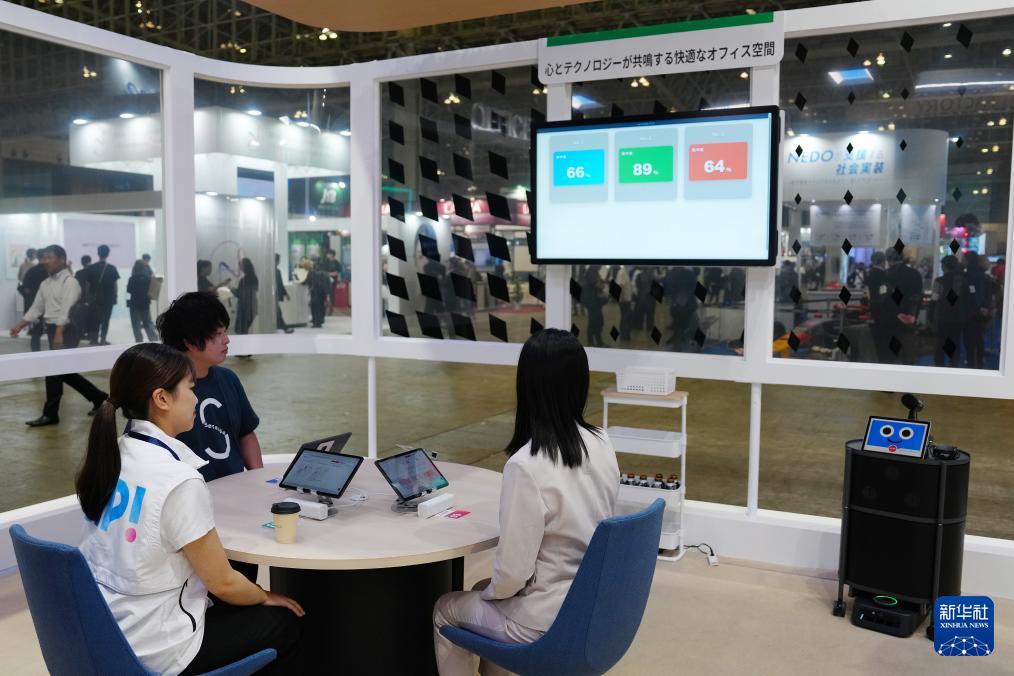 這是10月14日在日本千葉縣舉行的2025年日本高新技術博覽會上拍攝的三菱公司的智能辦公空間。