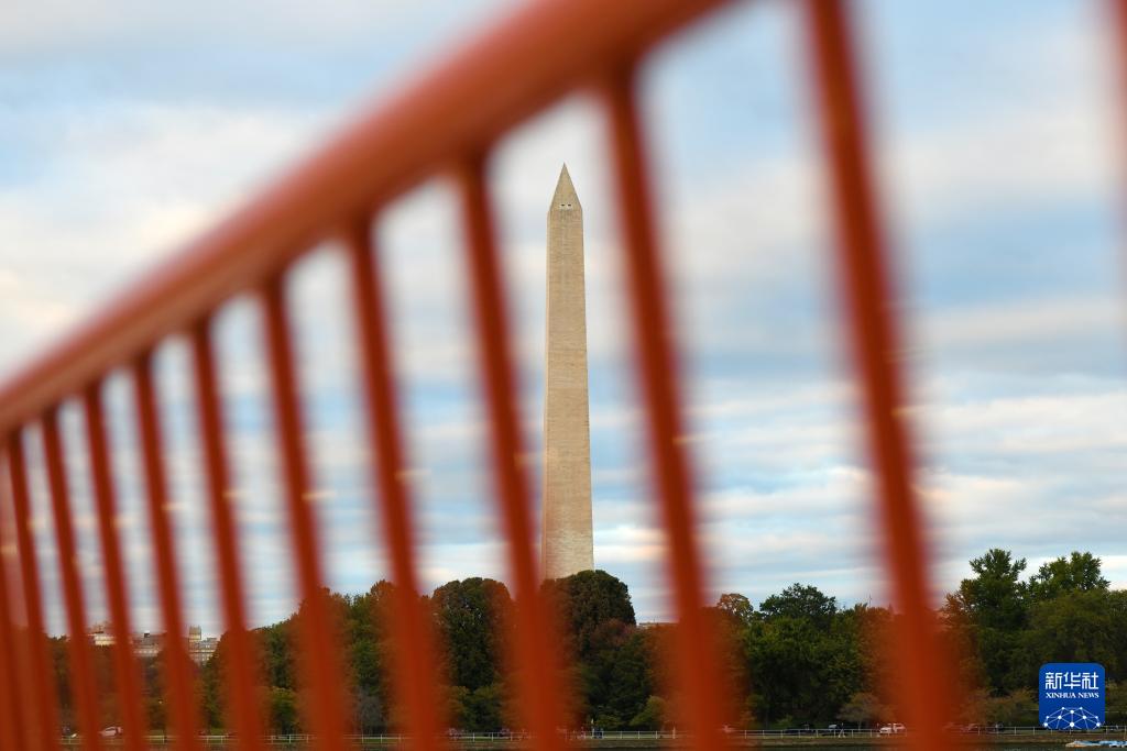 這是10月14日在美國華盛頓拍攝的華盛頓紀(jì)念碑。