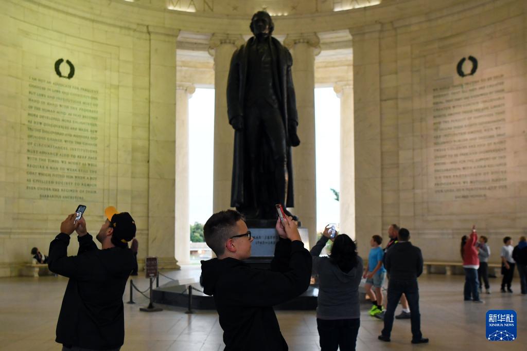 10月14日,在美國(guó)華盛頓,人們參觀杰斐遜紀(jì)念堂。