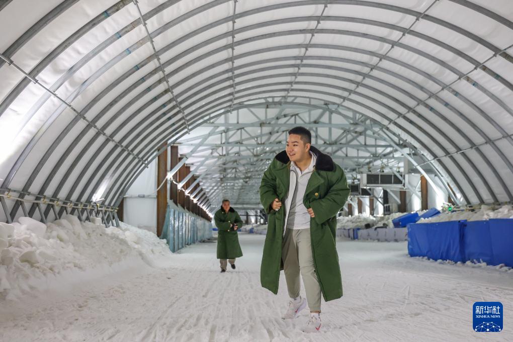 8月17日,王劍書體驗(yàn)河北承德國家雪上項(xiàng)目訓(xùn)練基地的四季訓(xùn)練館雪道。