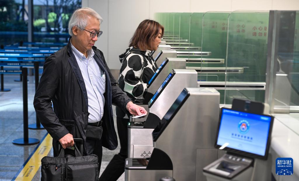 10月15日,入境旅客在海口美蘭邊檢站使用快捷通道通關(guān)。
