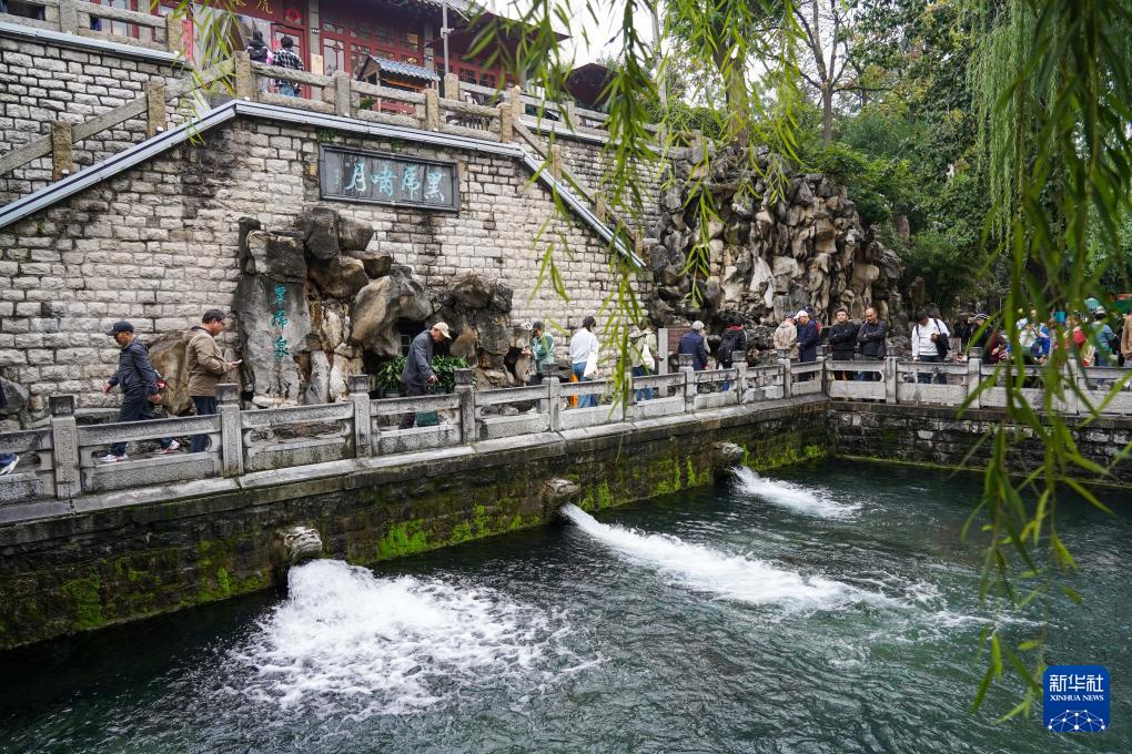 10月15日,游客在濟南黑虎泉觀光游覽。