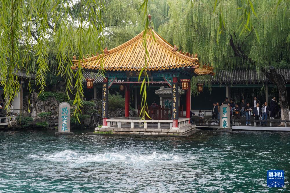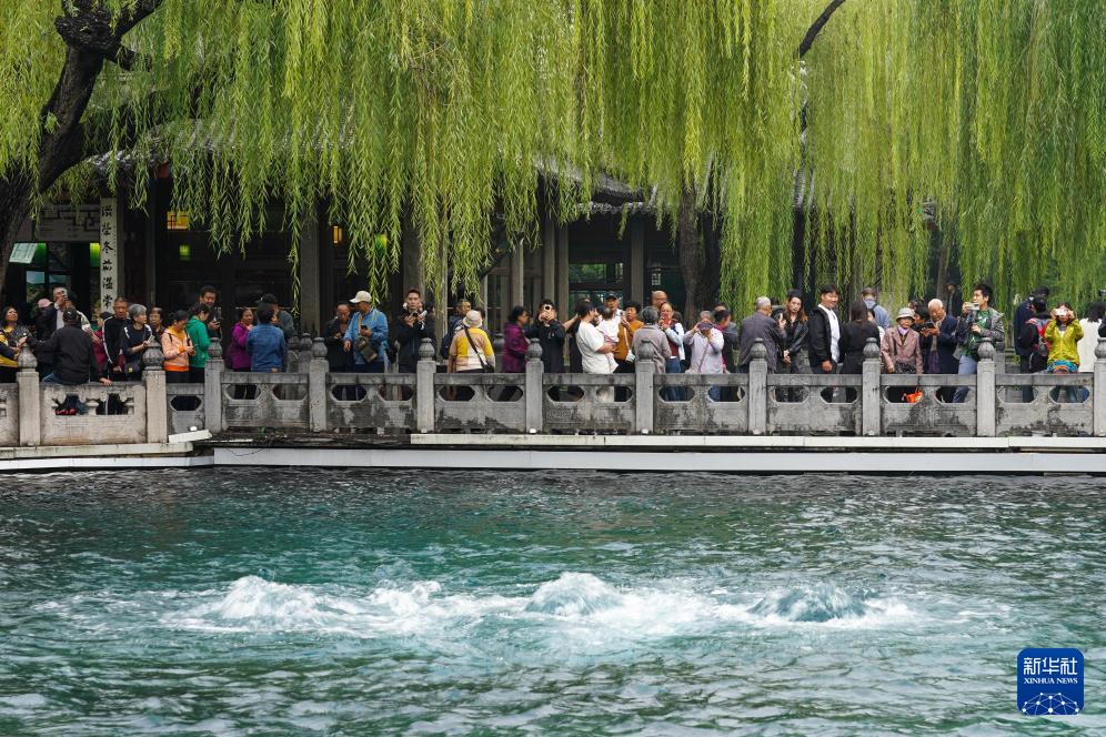 受近期降雨影響,山東省濟南市群泉奔涌,吸引游客前來觀賞。
