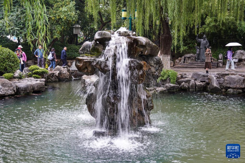 10月15日,游客在濟南瑪瑙泉觀光游覽。