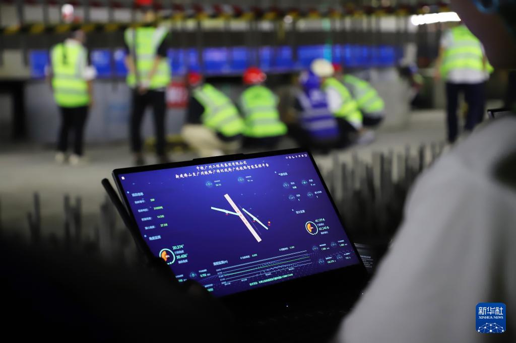 10月16日凌晨,工作人員使用智能監控平臺實時查看斜拉橋轉體狀態。