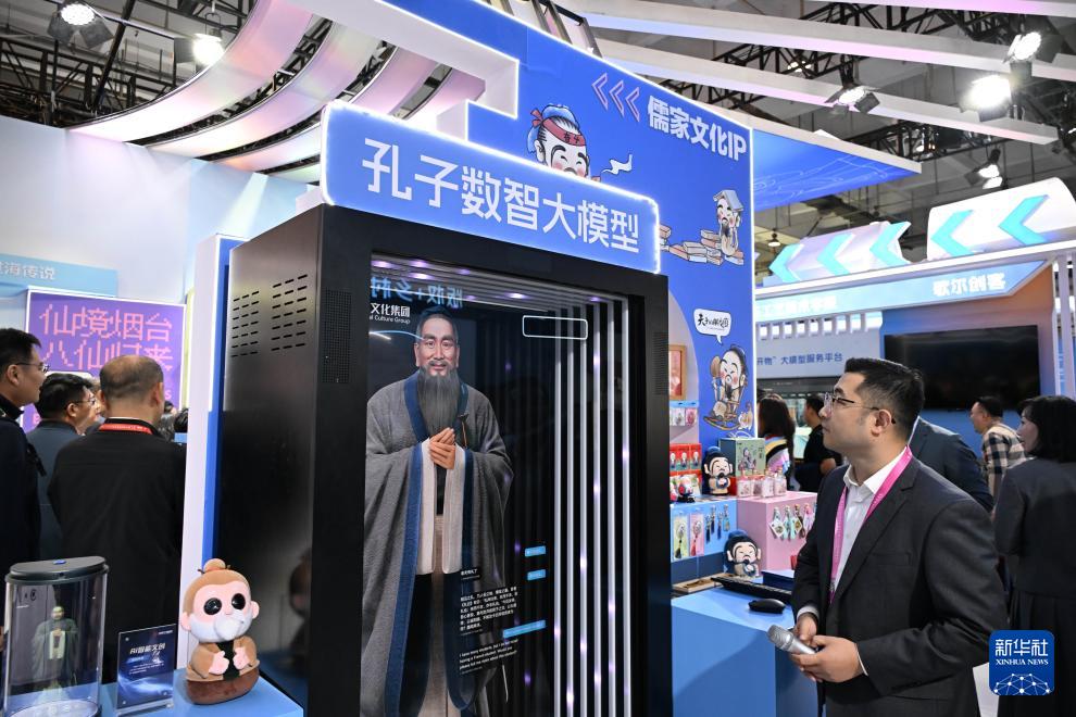 10月16日,與會(huì)人員在第十屆中國國際版權(quán)博覽會(huì)上觀看"孔子數(shù)智大模型"的演示。