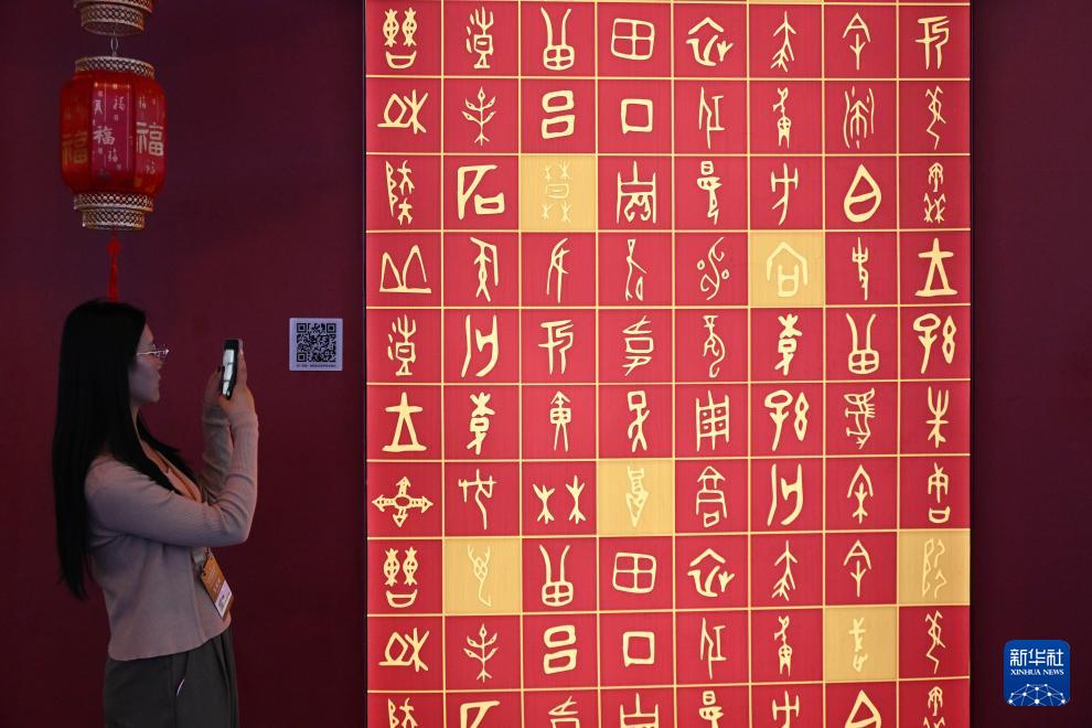 10月16日,與會(huì)人員在第十屆中國國際版權(quán)博覽會(huì)上拍攝"甲骨文百家姓"。