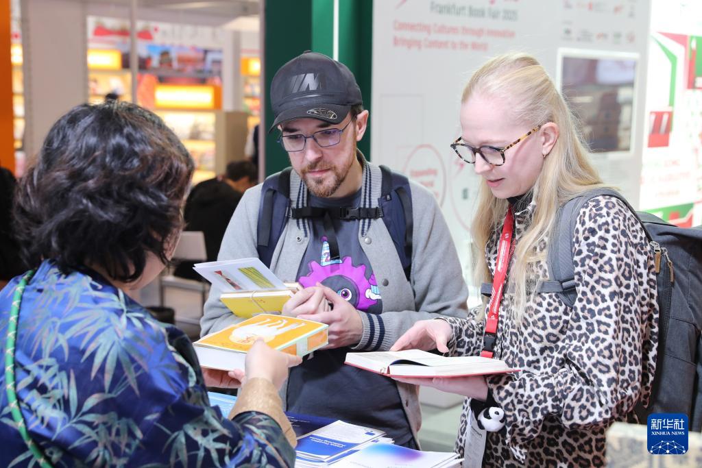 10月15日,讀者在德國法蘭克福書展中國聯(lián)合展臺翻閱圖書。