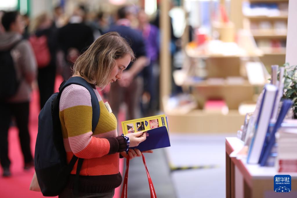 10月16日,一名讀者在德國法蘭克福書展中國聯(lián)合展臺翻閱圖書。