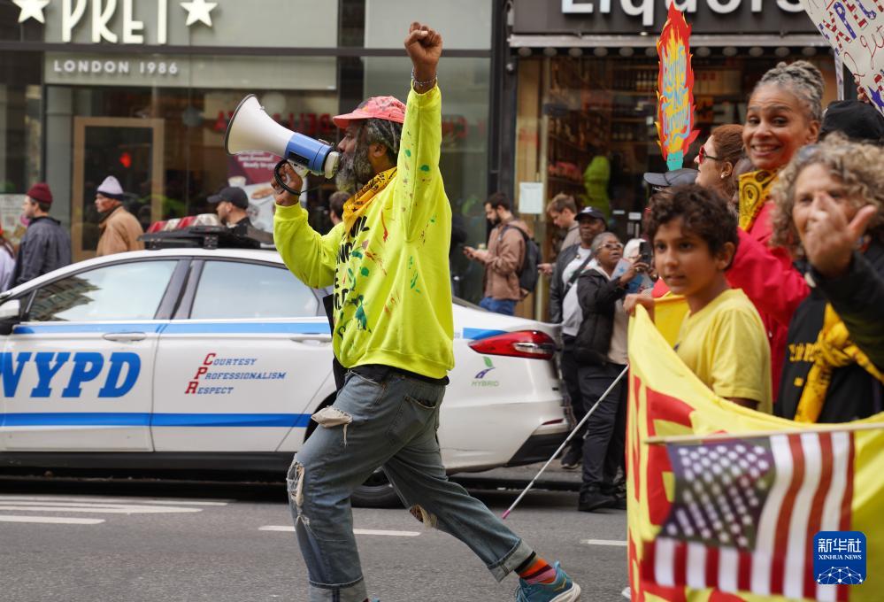 10月18日,在美國紐約,人們參加示威游行活動。
