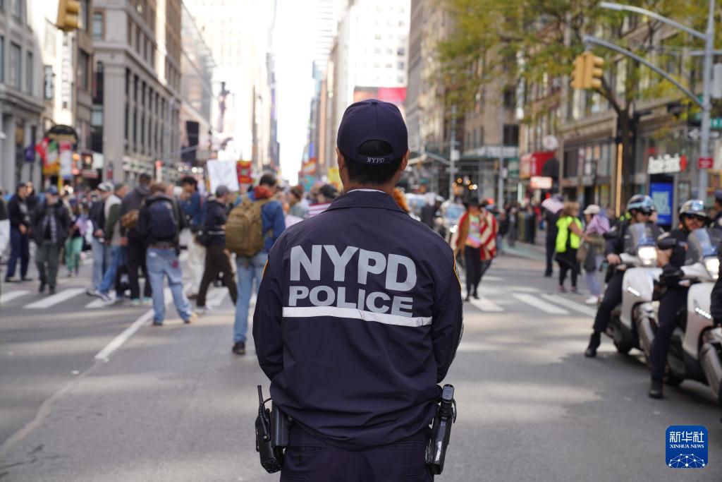10月18日,在美國紐約,警察在示威游行活動現場執勤。