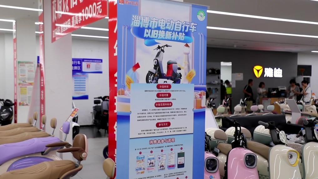 同時,淄博市還積極利用家電等消費品以舊換新政策,開展一系列促消費活動,推動消費市場持續升溫。當地對"以舊換新"的電動自行車消費者,按照產品最終銷售價格的20%給予補貼,每輛最高補貼500元。
