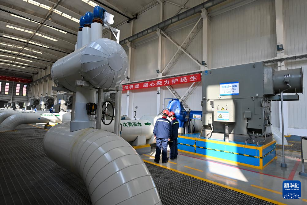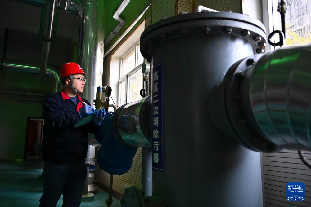 在太原市熱力集團有限責任公司中繼能源站,工作人員檢查設備運行情況(10月19日攝)。