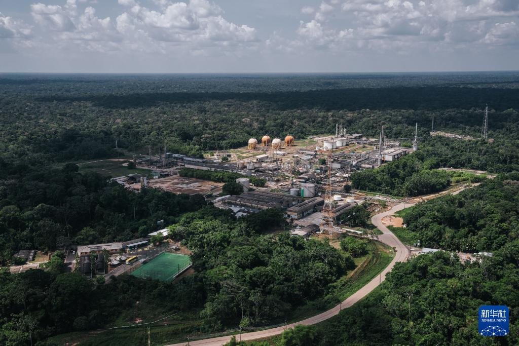 這是10月17日在巴西亞馬孫州拍攝的烏魯庫(kù)油氣生產(chǎn)基地的生產(chǎn)設(shè)施區(qū)(航拍照片)。