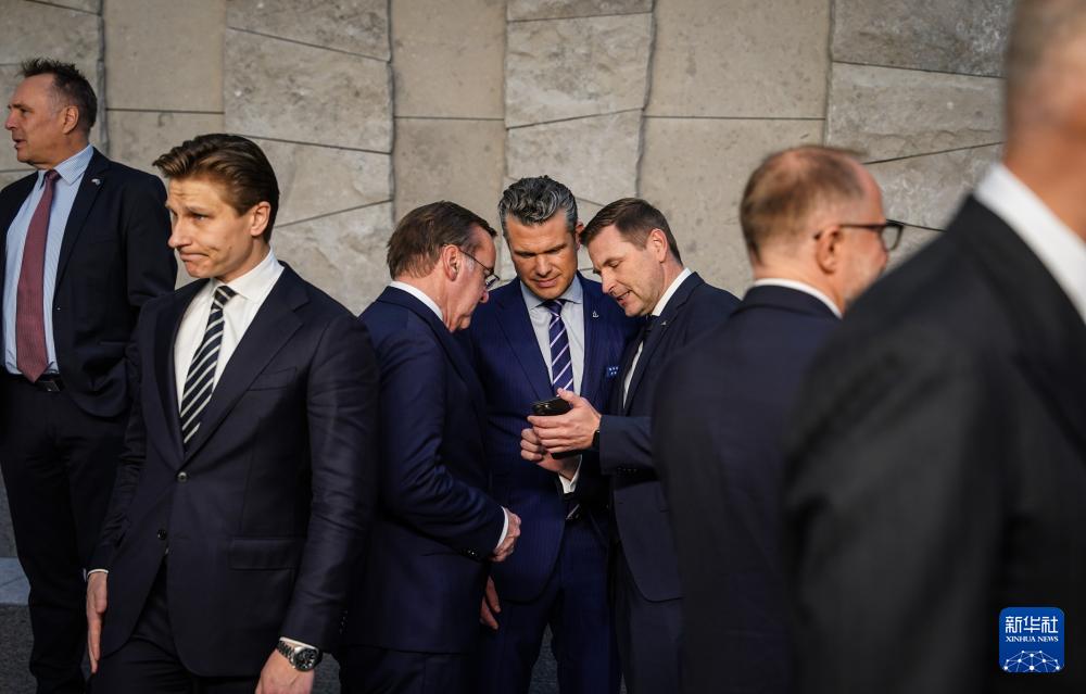 10月15日,在比利時(shí)布魯塞爾舉行的北約防長(zhǎng)會(huì)議結(jié)束后,美國(guó)國(guó)防部長(zhǎng)赫格塞思(中)與愛沙尼亞國(guó)防部長(zhǎng)佩夫庫(kù)爾(右三)、德國(guó)國(guó)防部長(zhǎng)皮斯托里烏斯(左三)交談。