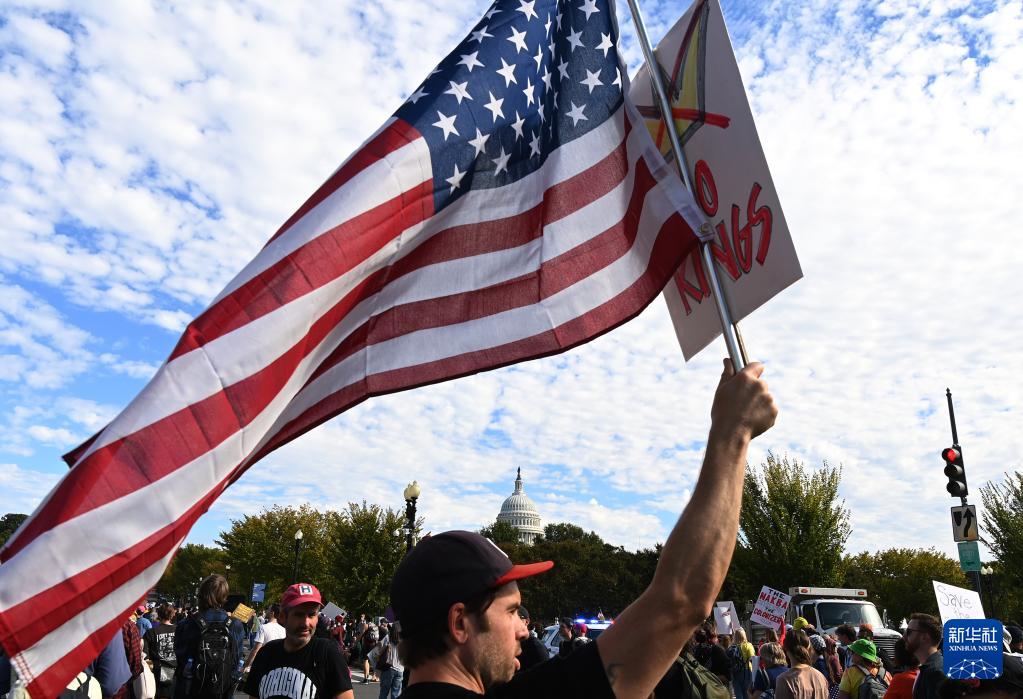 10月18日,在美國(guó)華盛頓,人們參加示威游行活動(dòng)。