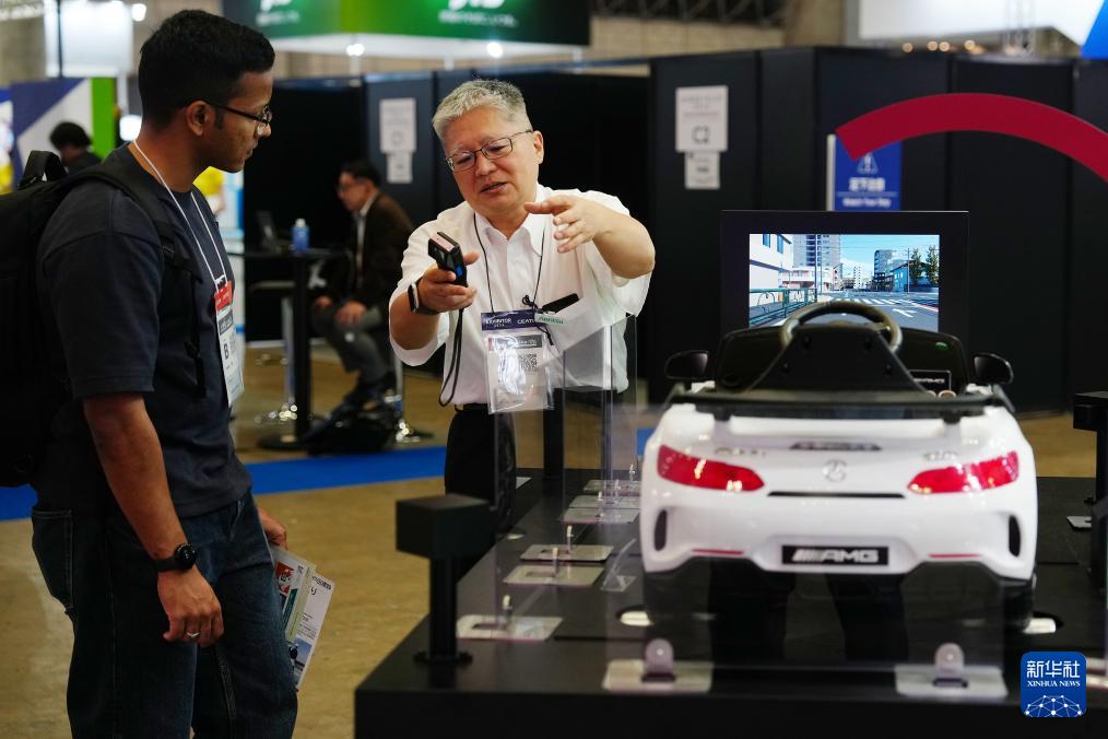 10月14日,在日本千葉縣,工作人員在2025年日本高新技術(shù)博覽會(huì)上向參會(huì)者介紹智能駕駛技術(shù)。
