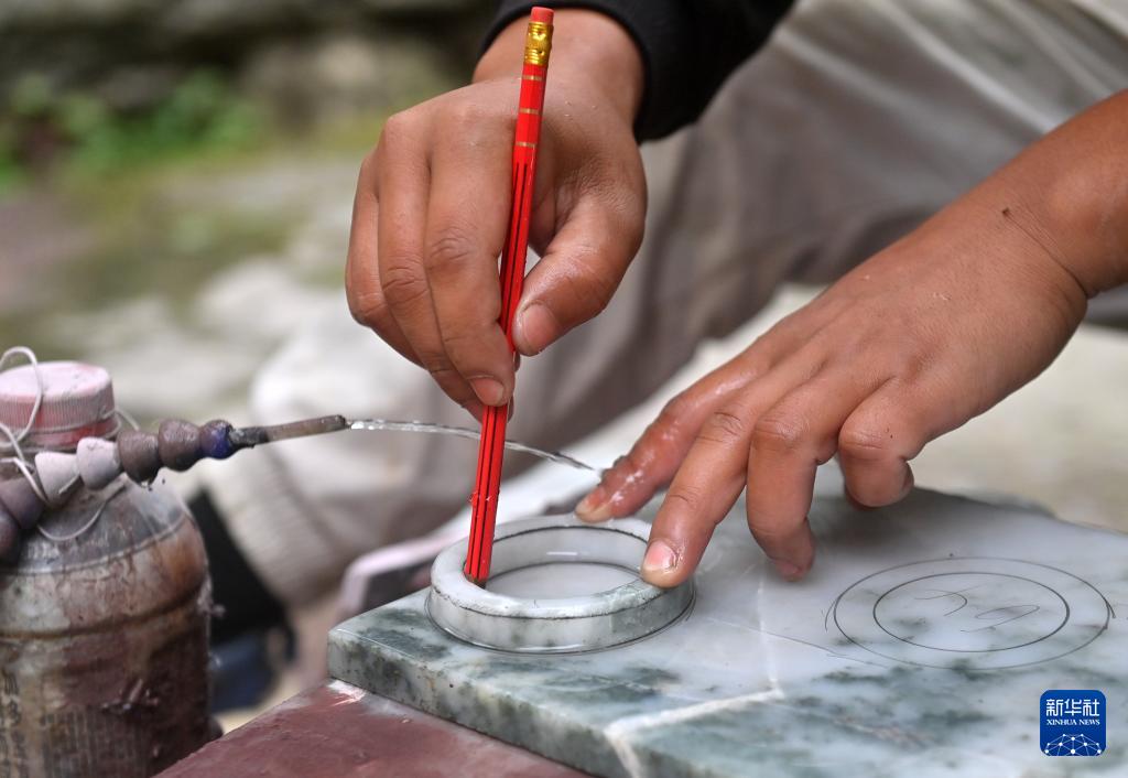 廣西龍勝各族自治縣是雞血玉的重要產(chǎn)地,該縣三門鎮(zhèn)擁有近50家玉器加工家庭作坊,幫助當(dāng)?shù)厝罕妼?shí)現(xiàn)家門口就業(yè)。