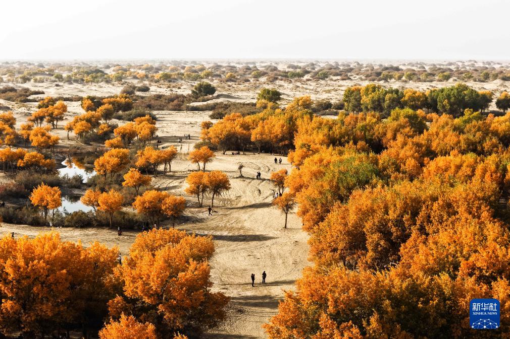時下,新疆和田地區的胡楊迎來最佳觀賞期,成片換妝的胡楊林與水天相映,共繪金秋美景。