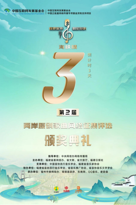 第二屆“我把家鄉(xiāng)唱給你聽·海峽情”兩岸原創(chuàng)音樂網(wǎng)絡(luò)征集評選活動暨“我把家鄉(xiāng)唱給你聽·海絲情”優(yōu)秀華文歌曲網(wǎng)絡(luò)征集大賽,將于10月24日在福州大學(xué)城文化藝術(shù)中心舉行頒獎典禮,屆時眾多海內(nèi)外音樂唱作人將齊聚福州,見證“海峽情”“海絲情”榮耀時刻。