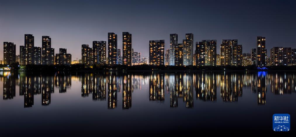 10月22日,湖北省武漢市的東湖風景區夜景絢麗。新華社記者 沈虹冰 攝