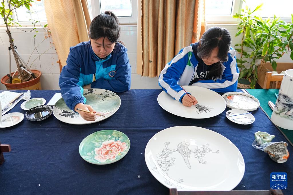 10月22日,淄博市博山第六中學學生在創作陶瓷彩繪。