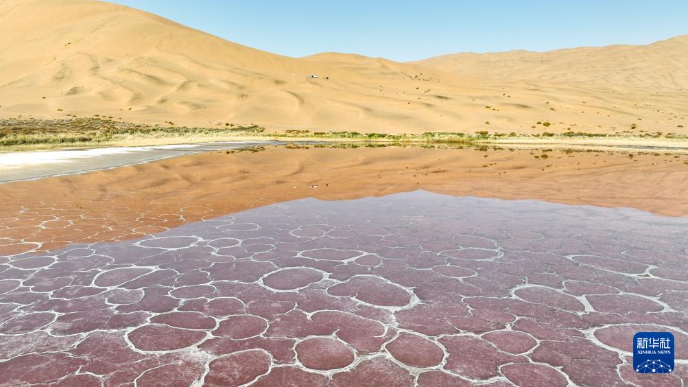 10月22日拍攝的巴丹吉林沙漠中的紅海子(無人機照片)。