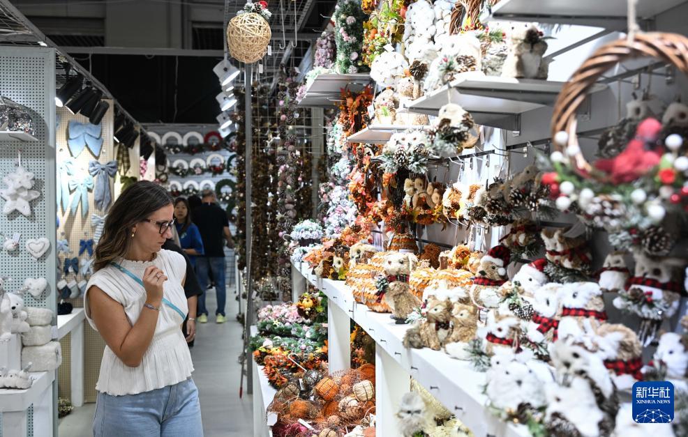 10月23日,境外采購商觀看裝飾品展臺。