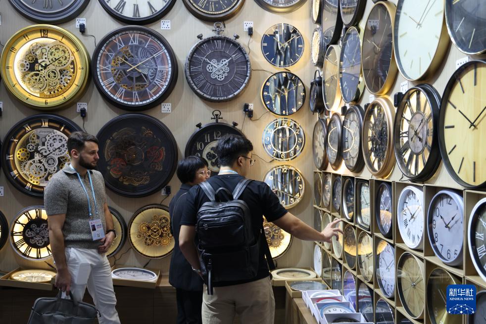 10月23日,客商在廣交會上參觀選購鐘表。