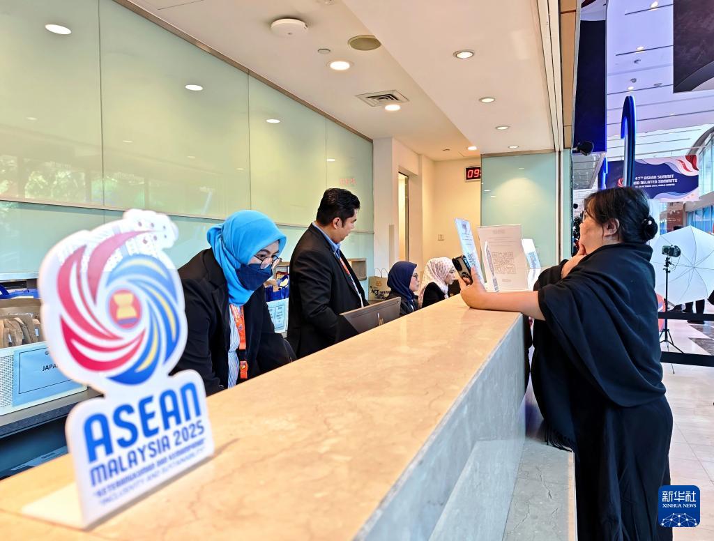 10月26日,記者在馬來西亞首都吉隆坡的東盟峰會新聞中心咨詢問題。