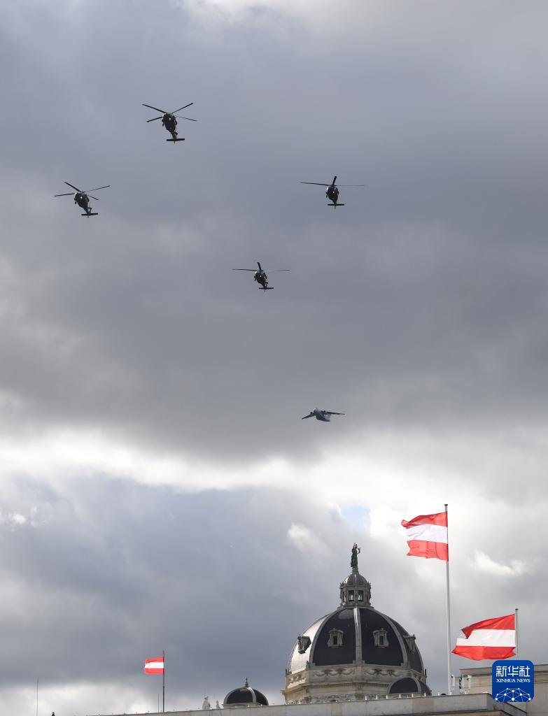 10月26日,在奧地利維也納,直升機編隊飛過霍夫堡。