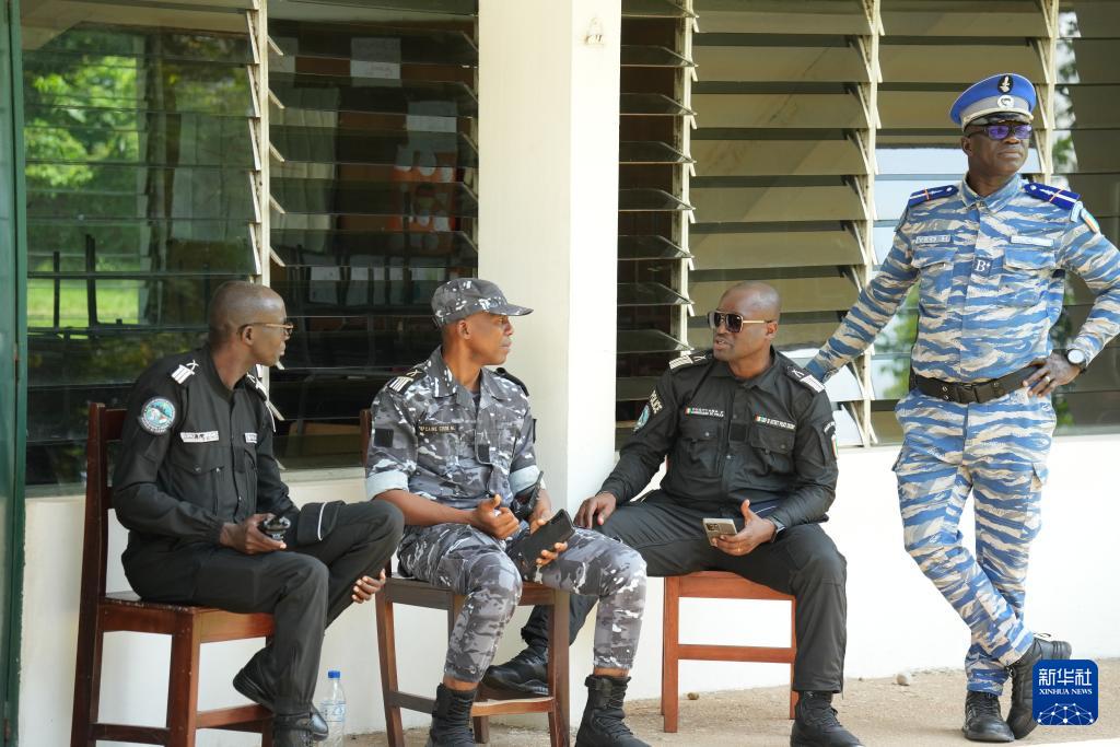 10月25日,在科特迪瓦經(jīng)濟(jì)首都阿比讓的一處投票站,憲兵和警察在交流。