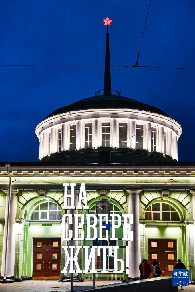 這是10月22日拍攝的俄羅斯摩爾曼斯克市火車站。該車站以其富有歷史感的外觀,成為當地的著名地標建筑。