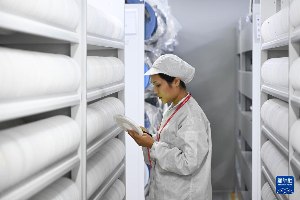 10月10日,在廣東省惠州市,工作人員在石頭科技電子倉庫內檢索信息。