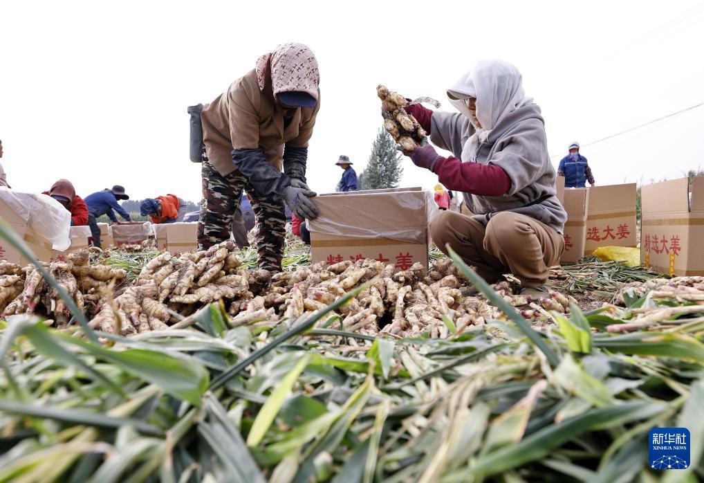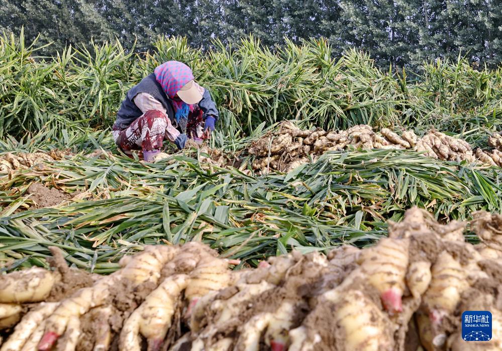 10月26日,河北省唐山市豐南區(qū)大新莊鎮(zhèn)的農(nóng)民在田間收獲生姜。