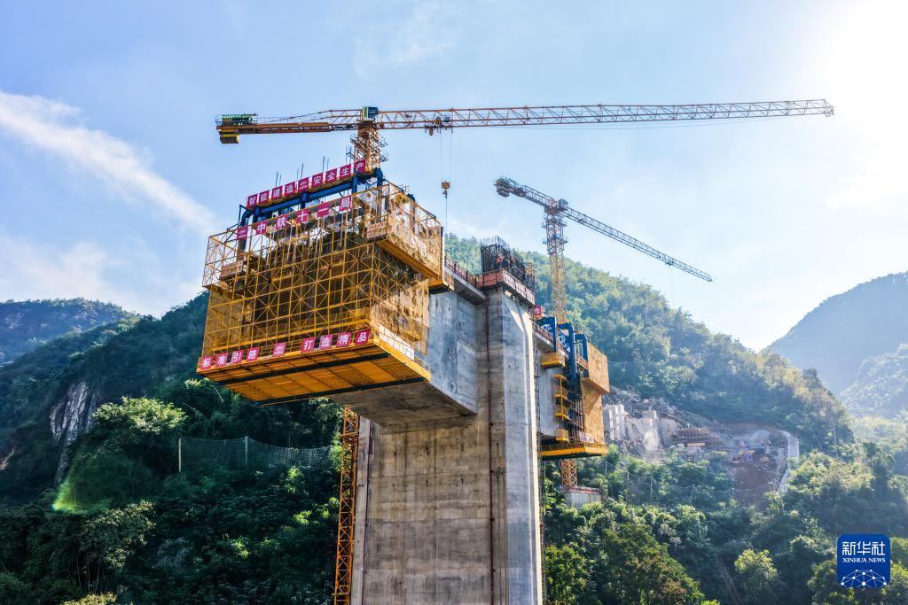 這是10月28日拍攝的西渝高鐵嘉陵江特大橋建設(shè)現(xiàn)場(無人機(jī)照片)。