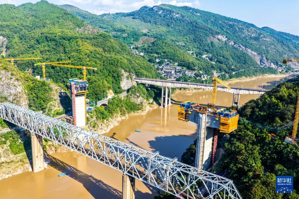 這是10月28日拍攝的西渝高鐵嘉陵江特大橋建設(shè)現(xiàn)場(chǎng)(無人機(jī)照片)。