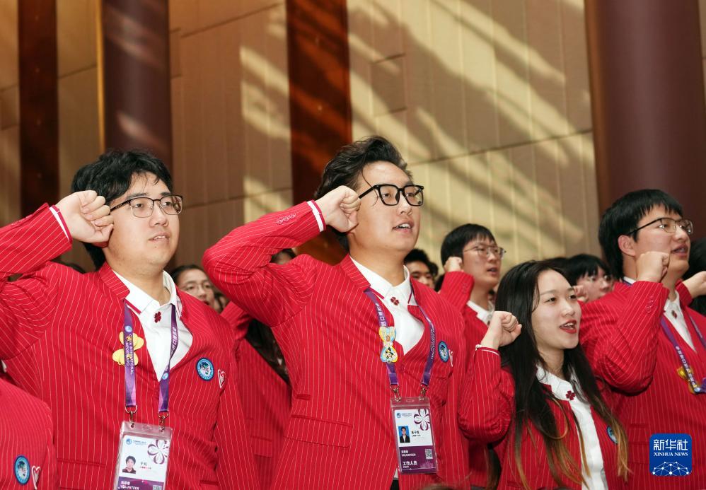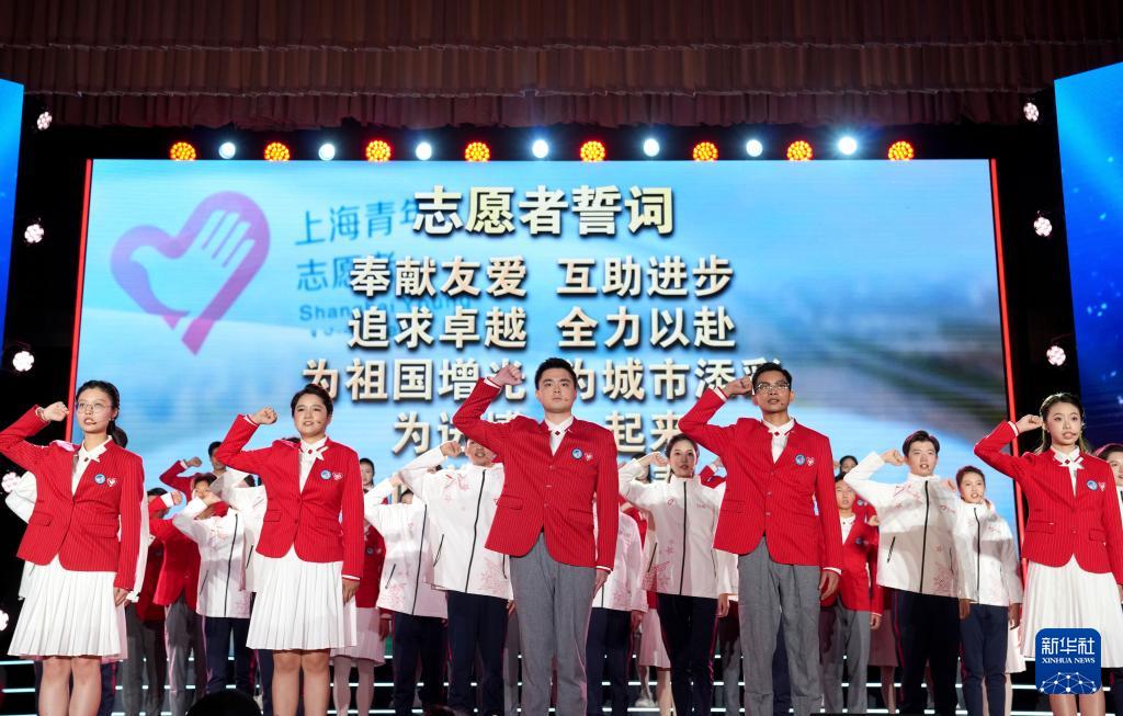 10月29日,第八屆中國國際進口博覽會志愿者上崗宣誓儀式在上海展覽中心友誼會堂舉行。志愿者將服務于現場引導咨詢、展會注冊管理、新聞宣傳輔助、交易數據統計、醫療衛生輔助等崗位。
