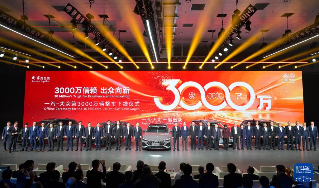 10月30日,一汽-大眾汽車有限公司第3000萬輛整車下線儀式在吉林長春舉行,成為國內首家產銷突破3000萬輛的乘用車企業。