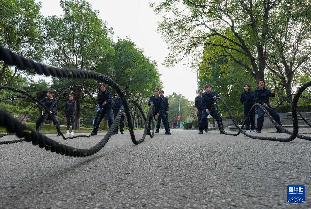 10月23日,參訓女刑警在進行“戰繩”上肢力量訓練。
