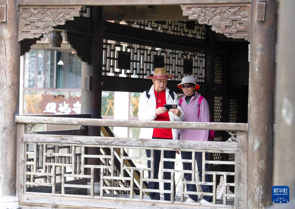 10月30日,游客在濯水古鎮風雨廊橋景點拍照留影。