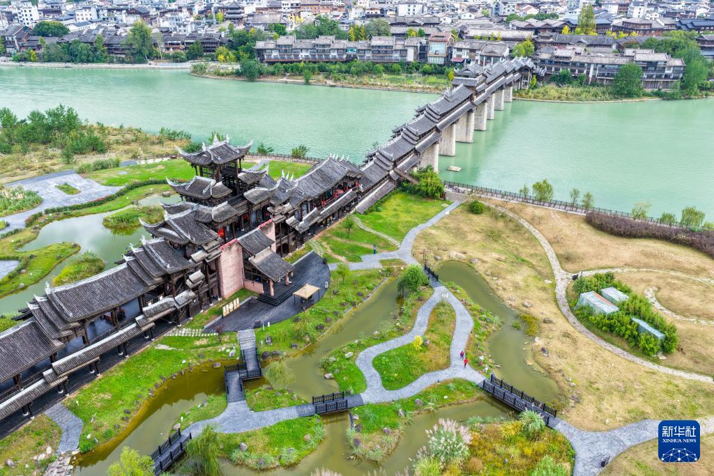 這是10月30日拍攝的濯水古鎮風雨廊橋景色(無人機照片)。