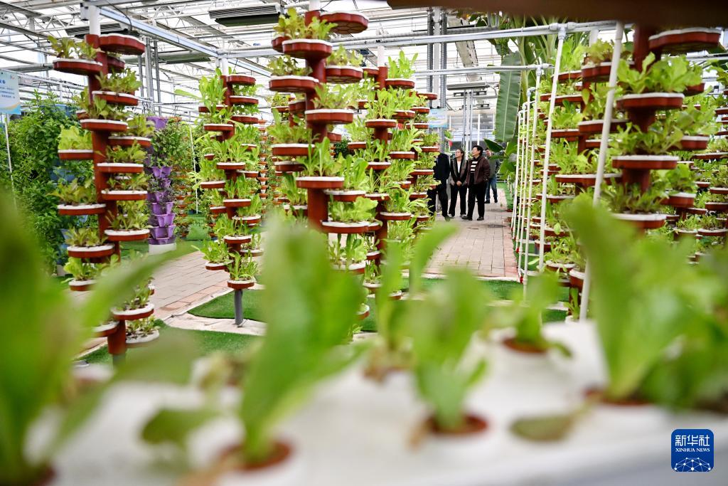 10月31日,游客在大運河堤頂路沿線的河北省滄州市青縣司馬莊村智能蔬菜大棚內參觀。