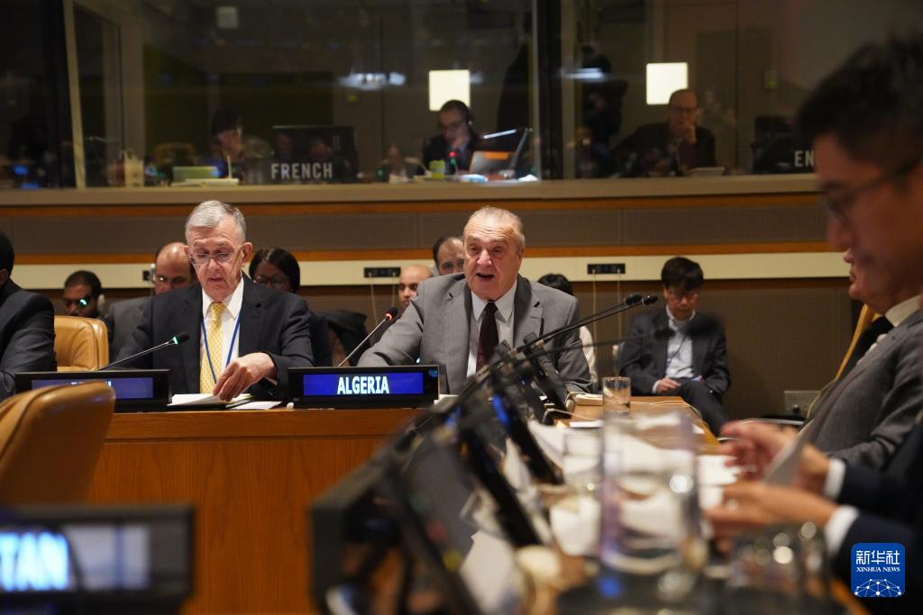 10月27日,在位于紐約的聯(lián)合國總部,阿爾及利亞常駐聯(lián)合國代表阿馬爾·本賈馬(中)在“紀念臺灣光復80周年,維護聯(lián)大第2758號決議權(quán)威”會議上發(fā)言。
