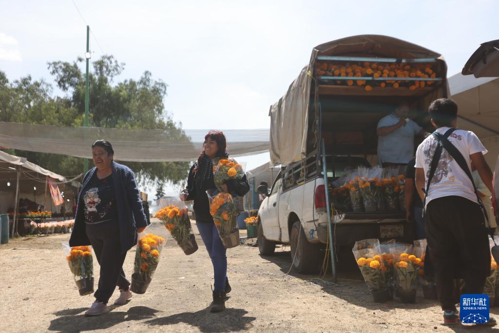 10月29日,在墨西哥首都墨西哥城的供應中心,人們購買萬壽菊為亡靈節做準備。
