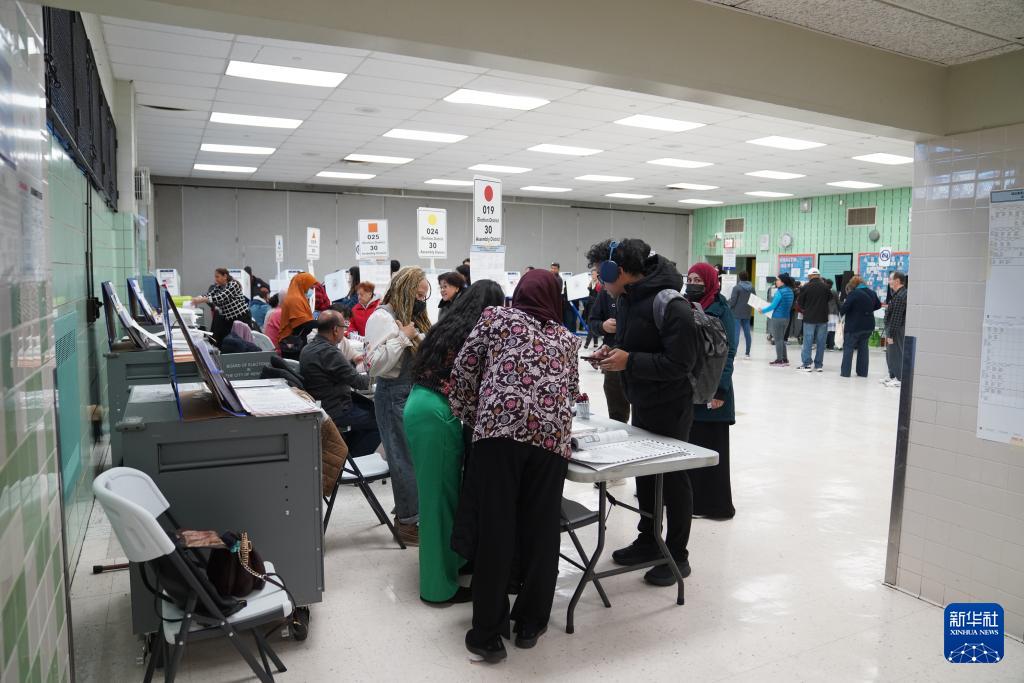 11月4日,選民在美國紐約市的一個投票站內(nèi)投票。