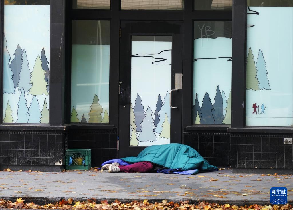 11月4日,在美國(guó)俄勒岡州波特蘭,無(wú)家可歸者在街頭睡覺(jué)。